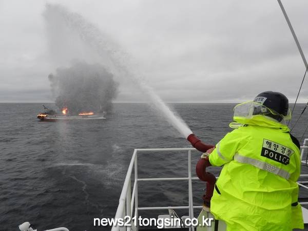 해경은 A호 선체가 섬유강화플라스틱(FRP) 재질로 만들어져 불길이 쉽게 잡히지 않아 오랜 시간에 걸쳐 진화했지만, A호는 오후 2시 5분께 화재로 인해 결국 침몰했다고 전했다.