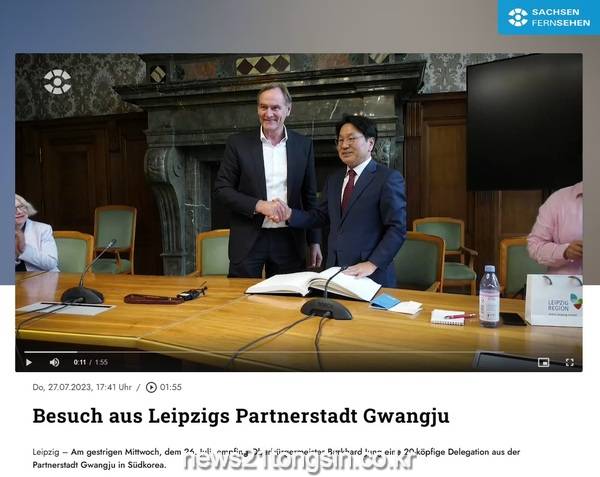 ▲ 작센TV[뉴스21통신/장병기 기자] 강기정 시장 등 광주광역시대표단의 독일 라이프치히 교류‧협력 활동을 현지 언론이 상세히 보도했다.