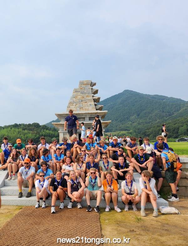 ▲  세계 잼버리 참가자 익산 미륵사지 방문