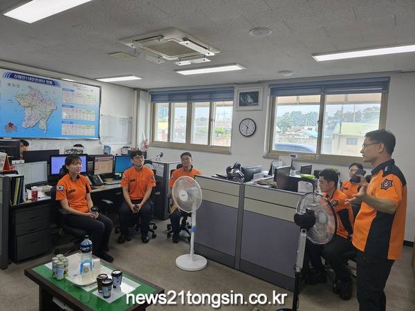 ▲  강봉화 정읍소방서장=현장 출동부서 격려 방문뉴스21통신전북/김문기기자=정읍소방서(서장 강봉화)는 연일 계속되는 폭염 속에서 고생하는 현장 직원들을 격려했다고 밝혔다.