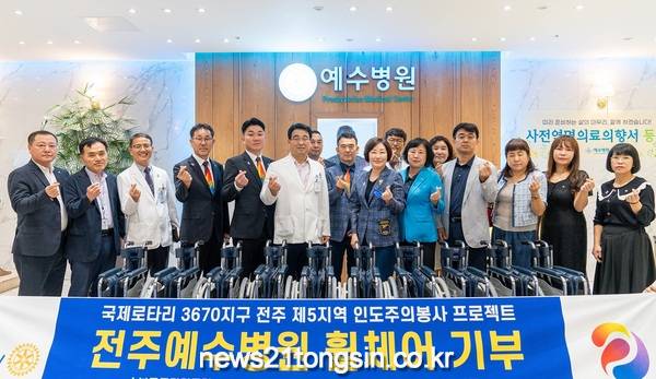 ▲  전주예수병원에 휠체어10대기부이날 봉동로타리클럽을 포함한 국제로타리 3670지구 6개 클럽은 인도주의봉사 프로젝트를 시작으로 예수병원 측에 휠체어 10대를 기증했다.