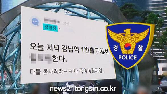 이 남성은 어제 직장인 대상 커뮤니티 사이트에 경찰청 소속 직원 계정을 이용해 '오늘 저녁 강남역 1번 출구에서 칼부림한다'는 글을 쓴 혐의를 받고 있다.