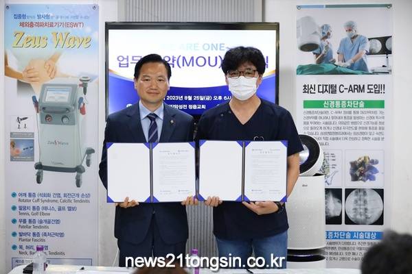 뉴스21통신전북/김문기기자=신천지예수교 증거장막성전 도마지파 정읍교회(담임강사 이용우, 이하 정읍교회)와 삼성연합정형외과가 25일 의료협약 MOU를 체결했다고 전했다.