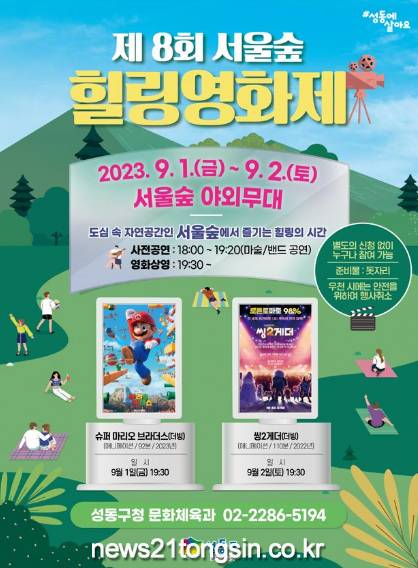 올해는 9월 1일과 2일, 양일간 오후 7시 30분 ‘서울숲 야외무대’에서 진행된다. 9월 1일은 올해 4월에 개봉한 영화인 ‘슈퍼 마리오 브라더스’를 시작으로, 2일에는 서울숲 분위기와 잘 어울리는 뮤지컬 영화 ‘씽2게더’를 상영할 예정이다.