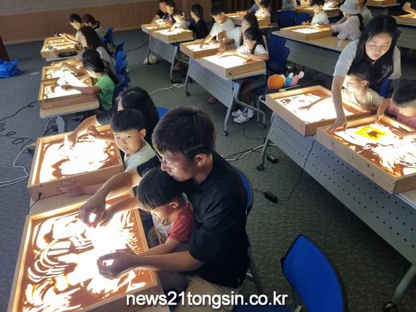 또 부모와 함께하는 샌드아트 체험을 진행해 학습 후 보고 느낀 점을 자유롭게 표현하기도 했다.