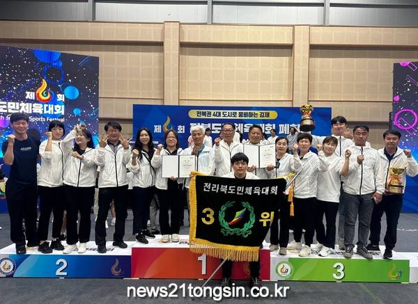 ▲ 정읍시청 제공정읍시가 지난 9월 1일부터 3일까지 김제시 일원에서 열린 ‘제60회 전라북도민체육대회’에 36종목 807명의 선수단이 참가해 타 시·군 개최 대회 역대 최고 성적인 종합 3위의 성적을 거뒀다.