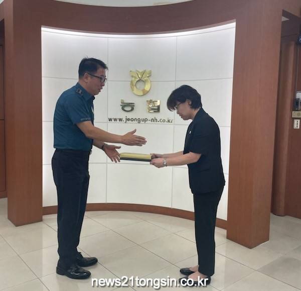 ▲ 정읍 경찰서= 수성농협지점 직원, 피싱 피해 예방 감사장 수여