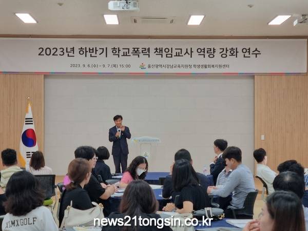 (뉴스21통신/최원영기자)=울산광역시 강남교육지원청(교육장 전인식)은 학교폭력 사안의 효율적인 처리 방안을 모색해 담당 교사의 역량 강화를 지원하고 있다.