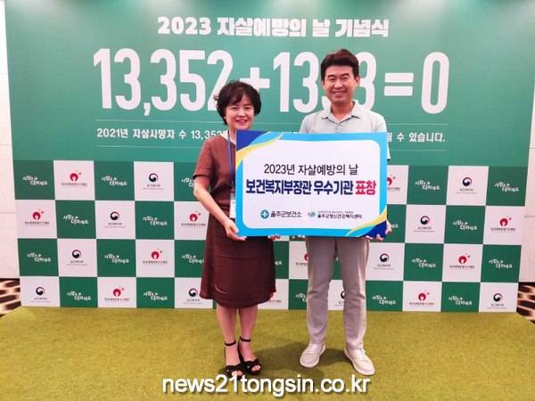 (뉴스21통신/우정석기자) = 울주군보건소가 8일 서울 중구 더 플라자 호텔에서 열린 ‘자살예방의 날’ 기념식에서 우수기관으로 선정돼 보건복지부 장관 표창을 수상했다.