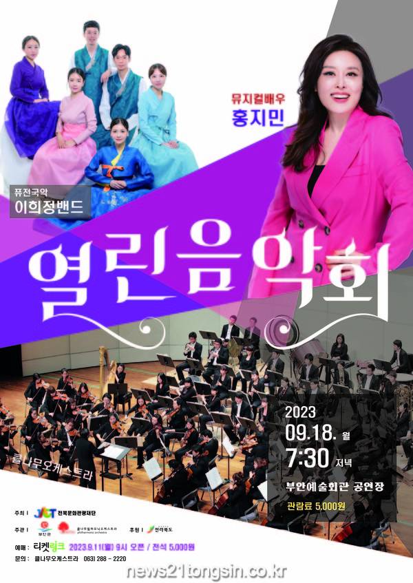 전라북도, 전라북도문화관광재단 후원으로 개최되는 <</span>열린음악회>는 뮤지컬, 창작국악, 클래식 공연이 더해져 다양한 무대가 펼쳐질 예정이다.