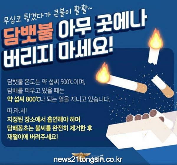 이에 정읍소방서는 담배꽁초로 인한 부주의 화재를 예방하기 위해 △보행 중 흡연을 삼가고 △지정된 장소에서만 흡연하며 △담배꽁초는 불씨를 완전히 제거한 후 반드시 재떨이에 버려야 한다고 강조했다.
