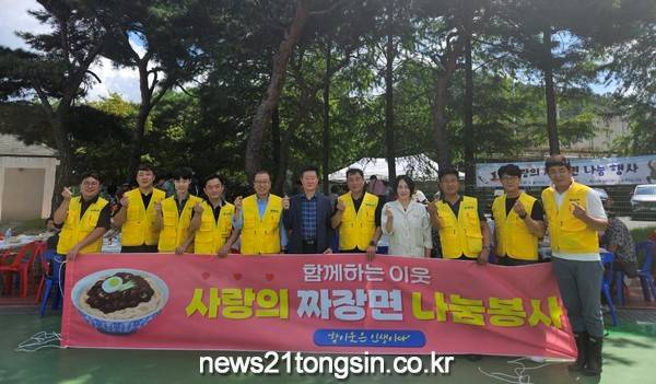 (뉴스21통신/우정석기자) = 봉사단체인 ‘함께하는 이웃(함이웃)’이 11일 울주군 범서생활체육공원에서 지역 어르신 300명을 대상으로 짜장면 나눔행사를 실시했다.