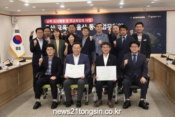 (뉴스21통신/우정석기자) = 울산광역시교육청(교육감 천창수)은 12일 울산광역시 동구청(동구청장 김종훈)과 ‘남목 도시재생 뉴딜사업 및 남목초 학교시설복합화 사업’ 조성과 운영에 관한 협약을 했다.
