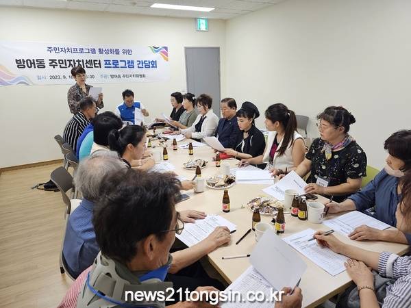 (뉴스21통신/임정훈기자) = 울산 동구 방어동 주민자치위원회(위원장 정동환)는 9월 18일 오후 3시 주민자치위원회 임원진, 프로그램 강사 및 회원 등 관계자 33명이 참석한 가운데 주민자치센터 프로그램 간담회를 개최하였다.