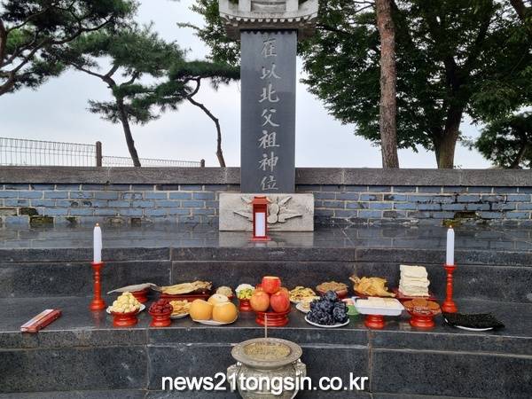 ▲ 사진=장선화 기자대한적십자사봉사회 서산지구협의회(회장 김인숙)는 지난 19일 오전 경기도 파주시 탄현면 오두산통일전망대 망배단에서 '북한이탈주민 차례상차리기' 행사를 가졌다.