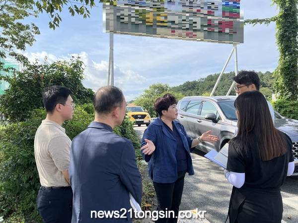 박인서 의원은 이날 현장 점검 후 “대형 철제 구조물 위에 설치된 불법 간판이 미관을 심각하게