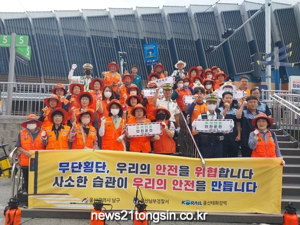 (뉴스21통신/최원영기자)=울산 남구(구청장 서동욱)는 22일 울산태화강역에서 추석명절대비 귀성길 안전운전 및 태화강역 무단횡단 근절 등의 주제로 안전점검의 날 교통안전 합동 홍보 행사를 가졌다.