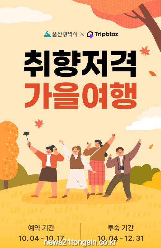 (뉴스21통신/우정석기자) = 울산시가 온라인 여행사인 트립비토즈와 협업을 통해 가을 여행객 유치에 나섰다.