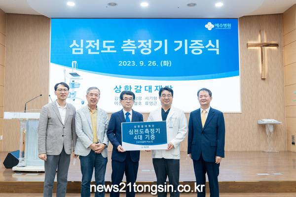 이번 기증식은 심장이 박동할 때 심장근육에 생기는 활동 전류나 활동 전위의 시각적 변동을 파상으로 기록하는 측정기로 상한갈대재단 임원진이 예수병원 예배실에 방문해 전달했다.
