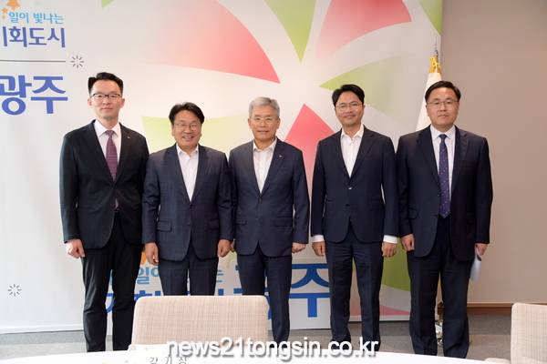 ▲ 김동철 한전사장 면담[뉴스21통신/장병기 기자] 강기정 광주광역시장과 김동철 한국전력공사 사장이 상생발전을 위해 공동협력하기로 했다.