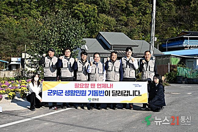 대구광역시 군위군(군수 김진열)은 각종 생활 속 불편 사항을 해결해 주는 ‘군위군 생활민원 기동반’을 이달부터 연말까지 시범운영 한다고 밝혔다. 군위군은 이와 관련해 사단법인 어울림 청년연합회와 생활민원 기동반 시범운영을 위한 위․수탁 협약을 체결한 바 있다. 김진열 군위군수는 현장 중심의 행정서비스를 실현하고 군...