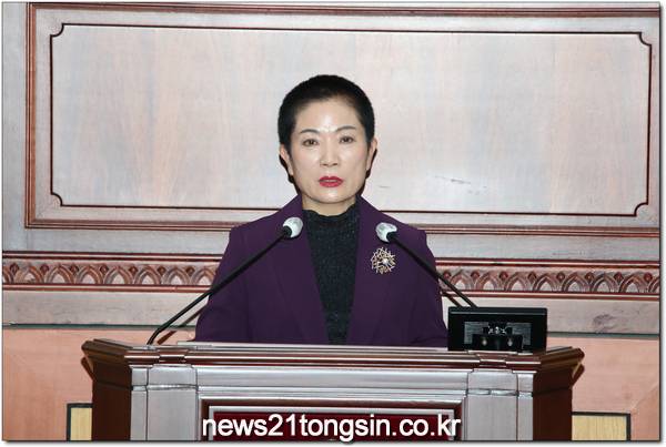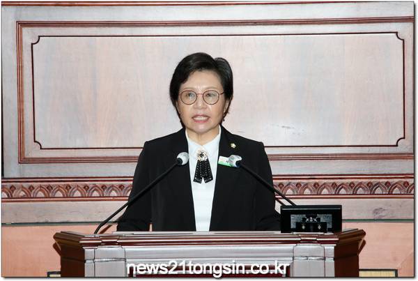 ▲ 황혜숙 의원 5분자유발언황혜숙 의원은 『친환경 소재 현수막 사용을 촉구하며』를 제안하였으며, 이복형 의원은 『시민의 건강과 복지증진을 위해 “맨발의 청춘 공원”을 조성하자.』를 촉구하였다.