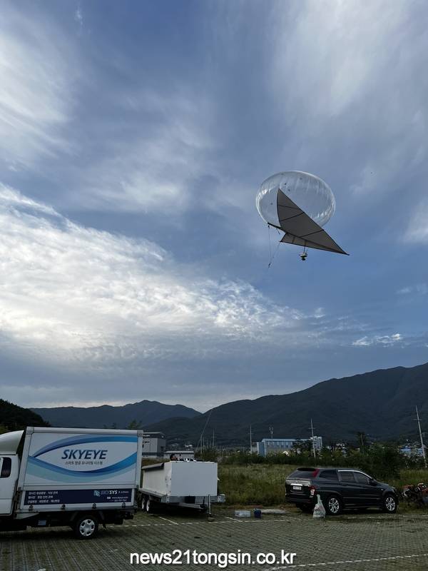 드론은 지름 3.45m 크기의 실리콘 재질 풍선에 헬륨가스를 채우고, 삼각형 연 모양의 비행체 아래 36배 줌이 가능한 높은 해상도(FHD)의 카메라를 매단 형태다.