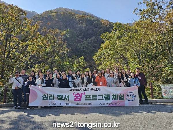 (뉴스21통신/최원영기자)=울산 남구는 2일 관내 사회복지시설 종사자 30명을 대상으로 심신 치유와 활력 회복을 위한 ‘쉼 프로그램’을 실시했다.
