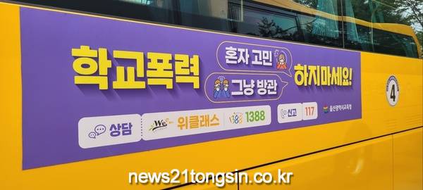 (뉴스21통신/우정석기자) = 울산광역시교육청(교육감 천창수)은 업무용 차량과 학교 통학버스를 이용해 ‘학교폭력 예방’ 홍보에 나선다.