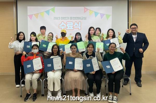 상반기에 이어 하반기에도 진행된 결혼이민자 운전면허교실은 지난달부터 이달까지 결혼이민자 총 11명이 참석했으며, 참석자 전원이 운전면허증을 취득해 100% 합격률을 보였다.