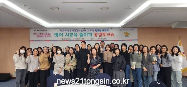 (뉴스21통신/우정석기자) = 울산광역시교육청(교육감 천창수)은 7일 집현실에서 중·고등학생 자녀를 둔 학부모 60여 명을 대상으로 영어 전문가가 알려주는 ‘영어 사교육 줄이기 공감 토크쇼’를 열었다.