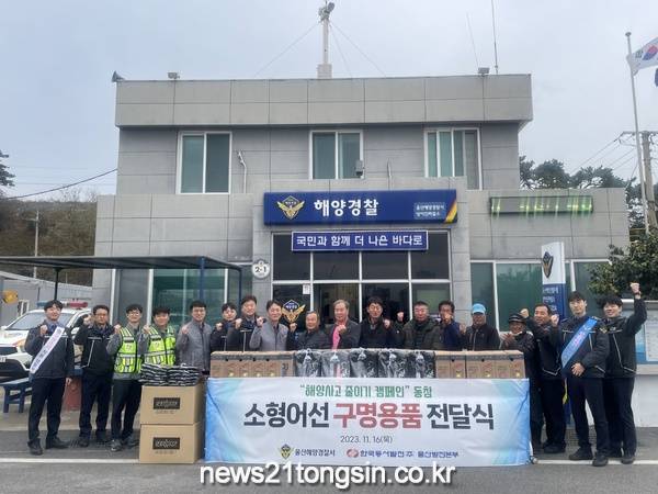(뉴스21통신/우정석기자) = 울산해양경찰서(서장 정욱한)는 16일 오후 한국동서발전 울산발전본부(본부장 남석열)와 함께 방어진 관내 2톤 미만 어선 및 1인 조업선 어민들에게 팽창식 구명조끼 70개와 간이식 소화기 90개를 전달했다고 밝혔다.