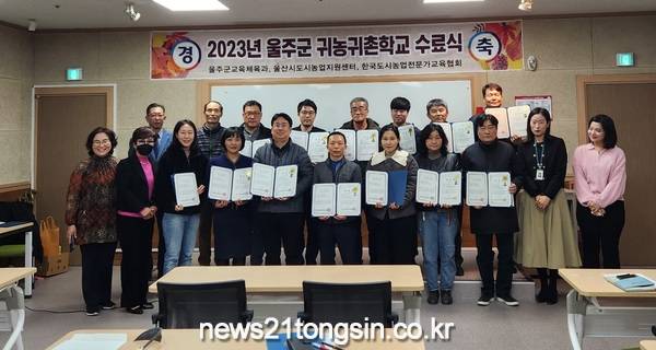 (뉴스21통신/우정석기자) = 울산시 울주군이 20일 온양문화복지센터에서 울주군민 23명을 대상으로 ‘2023년도 슬기로운 귀농귀촌학교 수료식’을 개최했다.