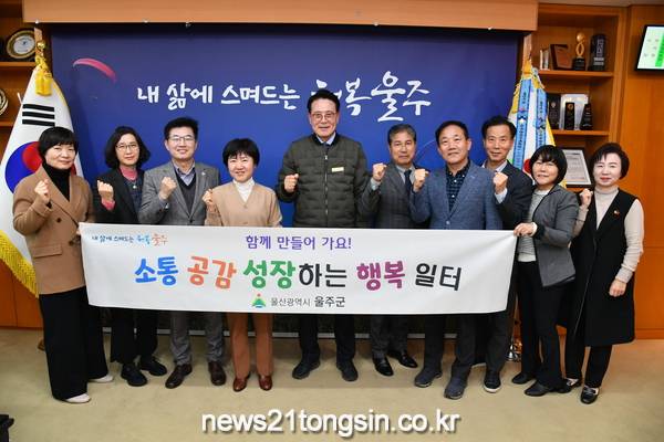 (뉴스21통신/우정석기자) = 울산시 울주군이 지난 20일 군청 소회의실에서 이순걸 군수를 비롯해 간부공무원 10여명이 참석한 가운데 공직 내부의 조직문화 개선을 위한 간담회를 개최했다.