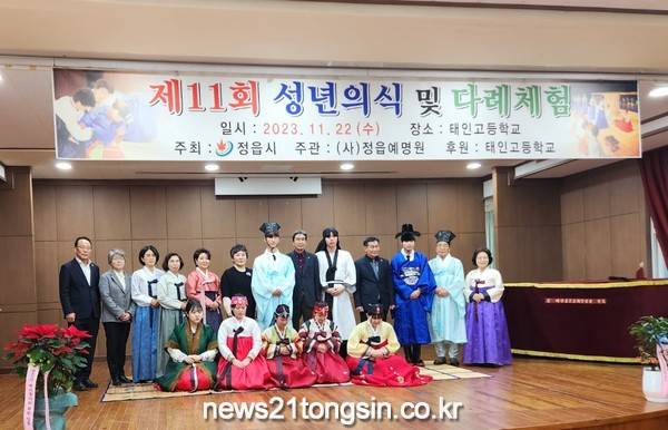 정읍예명문화원(대표 박형숙)은 정읍시의 후원으로 지난 22일 태인고등학교 재학생 100여명을 대상으로 성년의식과 다례체험을 진행했다.