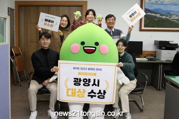 광양시는 지난 10월 ‘2023 대한민국 SNS 대상’ 기초지자체 시 부문 최우수상 수상, ‘2023 제6회 우리동네캐릭터대상’에서 시 캐릭터 ‘매돌이’ 우수상 수상에 이어 올 한 해 SNS 평가 3개 분야에서 수상하는 쾌거를 이뤘다.