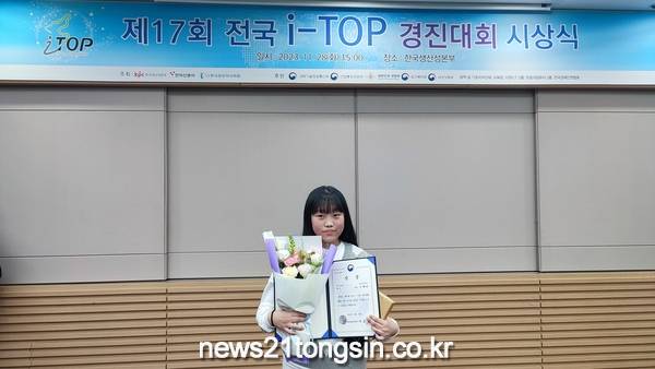 옥동초 6학년 신예원 학생은 ‘제17회 아이 탑(I-TOP) 경진대회’에서 정보기술(ITQ) 분야의 대상인 과학기술정보통신부 장관상을 받았다. 시상식은 지난 28일 한국생산성본부에서 열렸다.