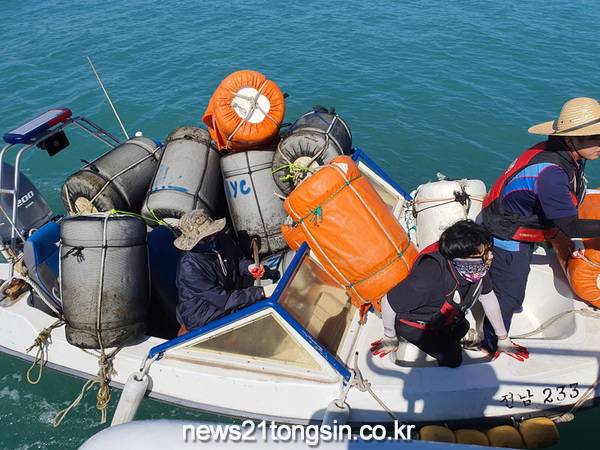 이에 따라 시는 지난 11월부터 어업지도선 2척과 어장정화선 1척, 어선 3척 등의 장비와 인원을 10회에 걸쳐 경계 해역에 투입, 100미터 길이의 불법 김양식 시설 25책과 약 1,300개의 불법 시설물인 부표를 강제 철거했다.