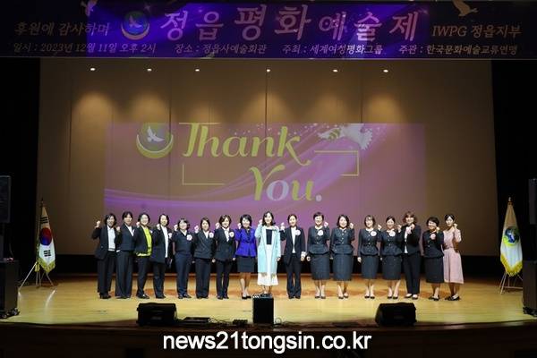 (사)세계여성평화그룹 정읍지부(IWPG, 지부장 김미애)는 12월 11일 정읍사 예술회관에서 인사와 회원을 모시고 정읍평화예술제를 개최했다.