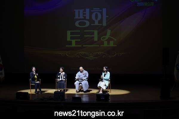 평화토크쇼는 고창 청룡사 무불스님, 고창지역관광문화협의회 강영수 회장, 심리연구소 문성숙소장, 전북지부 이수정지부장이 ‘내가 생각하는 평화’라는 주제를 가지고 토론하며, 참가자의 질의응답으로 평화를 한층 더 발전시키는 의미 있는 시간을 가졌다.