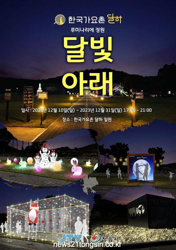 달하의 야경과 어울려 더욱 아름답게 빛날 이번 행사는 오는 12월 31일까지 매일 오후5시부터 오후 9시까지 한국가요촌 달하 야외 잔디광장 일원에서 진행될 예정이다.