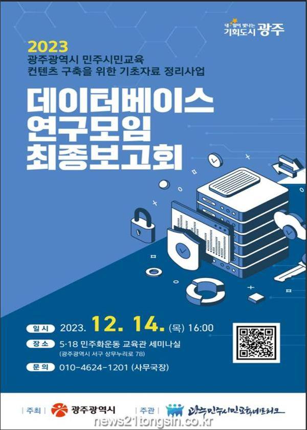 ▲ 민주시민교육 DB구축 최종 보고회 포스터[뉴스21통신/장병기 기자] 광주광역시와 광주민주시민교육네트워크는 오는 14일 5·18민주화운동교육관에서 ‘광주 민주시민교육 데이터베이스 구축 최종보고회’를 개최한다.