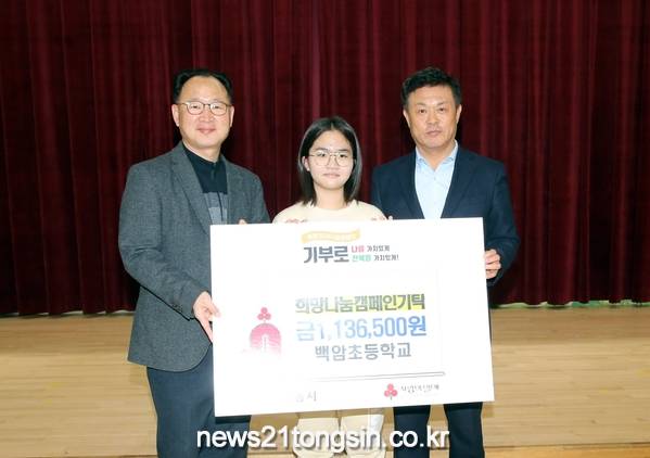 한편, 백암초는 지혜와 나눔으로 만들어 가는 행복 교육 공동체라는 교육 철학 아래 다양한 체험활동과 계절학교 플리마켓 행사를 통해 이웃돕기 성금을 마련해 그린피스나 초록우산 등에 꾸준히 기부해오고 있다.
