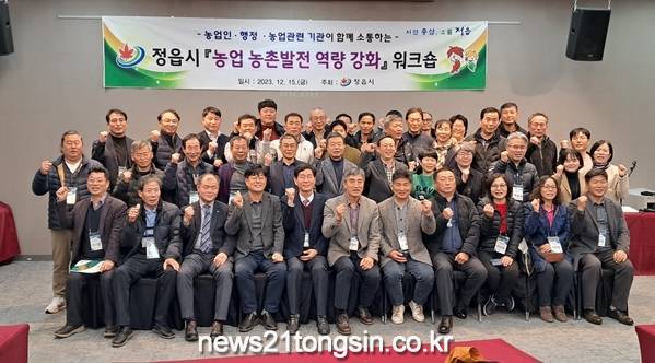 ▲ 농업인과 소통하는 정읍시=농업농촌발전 역량강화 워크숍 개최정읍시는 지난 15일부터 16일까지 전주 베스트웨스턴 호텔에서 농업인과 행정, 유관기관이 함께 소통하는 농업농촌발전 역량강화 워크숍을 개최했다고 18일 밝혔다.