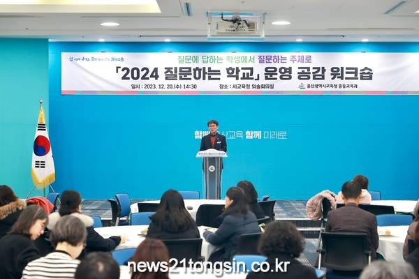 울산시교육청은 20일 시교육청 외솔회의실에서 중·고등학교 교원 100명을 대상으로 ‘2024년 질문하는 학교 운영 공감 공동 연수(워크숍)’를 진행했다.