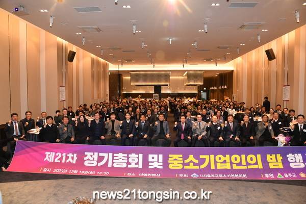 (뉴스21통신/우정석기자) = 울주군중소기업협의회(회장 원경연)가 지난 19일 삼남읍 더엠컨벤션에서 지역 중소기업인 150여명이 참석한 가운데 ‘울주군 중소기업인의 밤’ 행사를 개최했다.