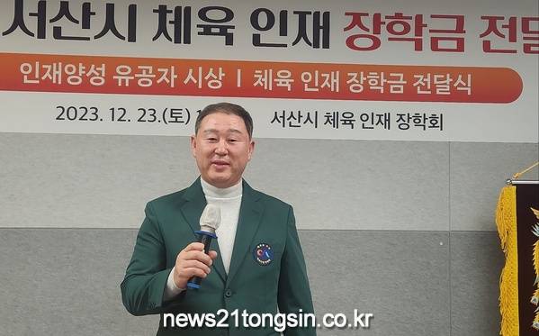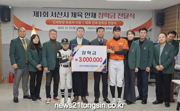 서산시 체육 인재 장학회(회장 전병윤)에서 지역 유소년 육성을 위한 인재 장학금 전달식을 23일 서산시 체육회 회의실에서 3시에 개최했다.