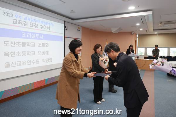 (뉴스21통신/우정석기자) = 울산광역시교육청(교육감 천창수)은 지난 26일 시교육청 집현실에서 우수 교육공무직원 22명에게 교육감 표창을 수여했다.