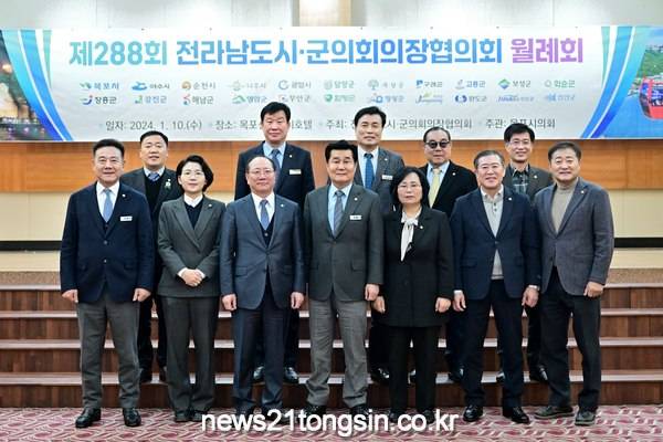 [뉴스21통신 박민창기자] 10일, 목포신안비치호텔 2층 비발디홀에서 제288회 전남 시․군의회 의장협의회 월례회의가 열렸다.