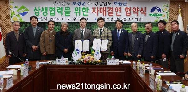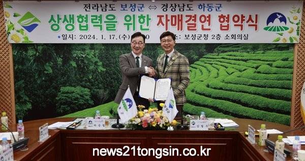 [뉴스21통신 박찬웅 기자] 보성군은 17일 전라남도 보성군과 경상남도 하동군이 보성군청 2층 소회의실에서 차 산업 발전을 위한 자매결연 협약을 체결했다고 밝혔다.